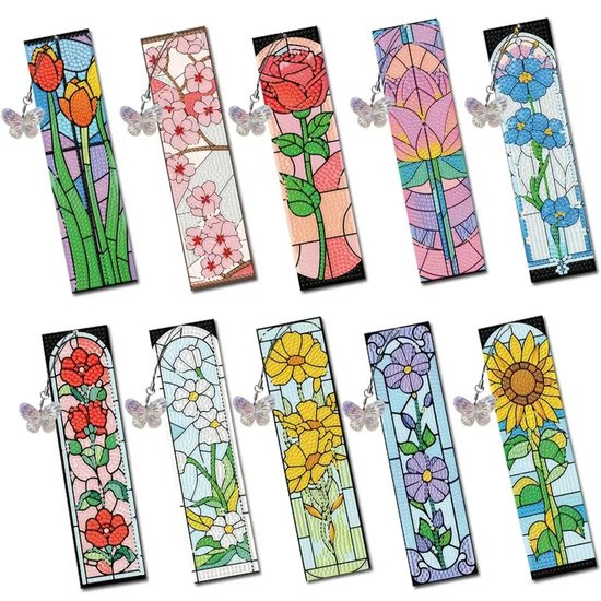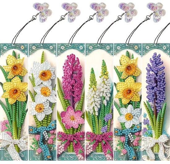 • Diamond painting boekenleggers bloemen