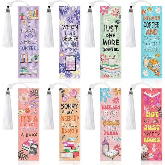Diamond Painting Boekenleggers – Complete Set (8 stuks)
