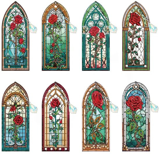• Diamond painting boekenleggers glas in lood met rozen