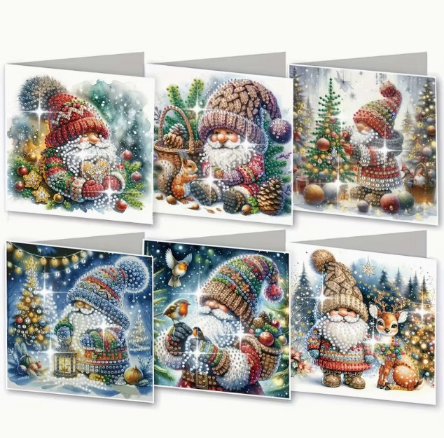 • Diamond painting kerstkaarten gnooms  6 stuks