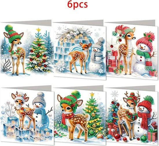 ✨ Diamond painting kerstkaarten – Set van 6 stuks ✨
