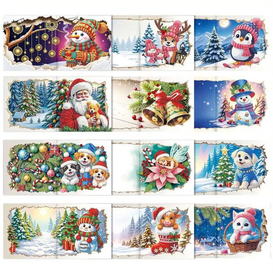 • Diamond painting kerstkaarten sneeuwpop 12 stuks